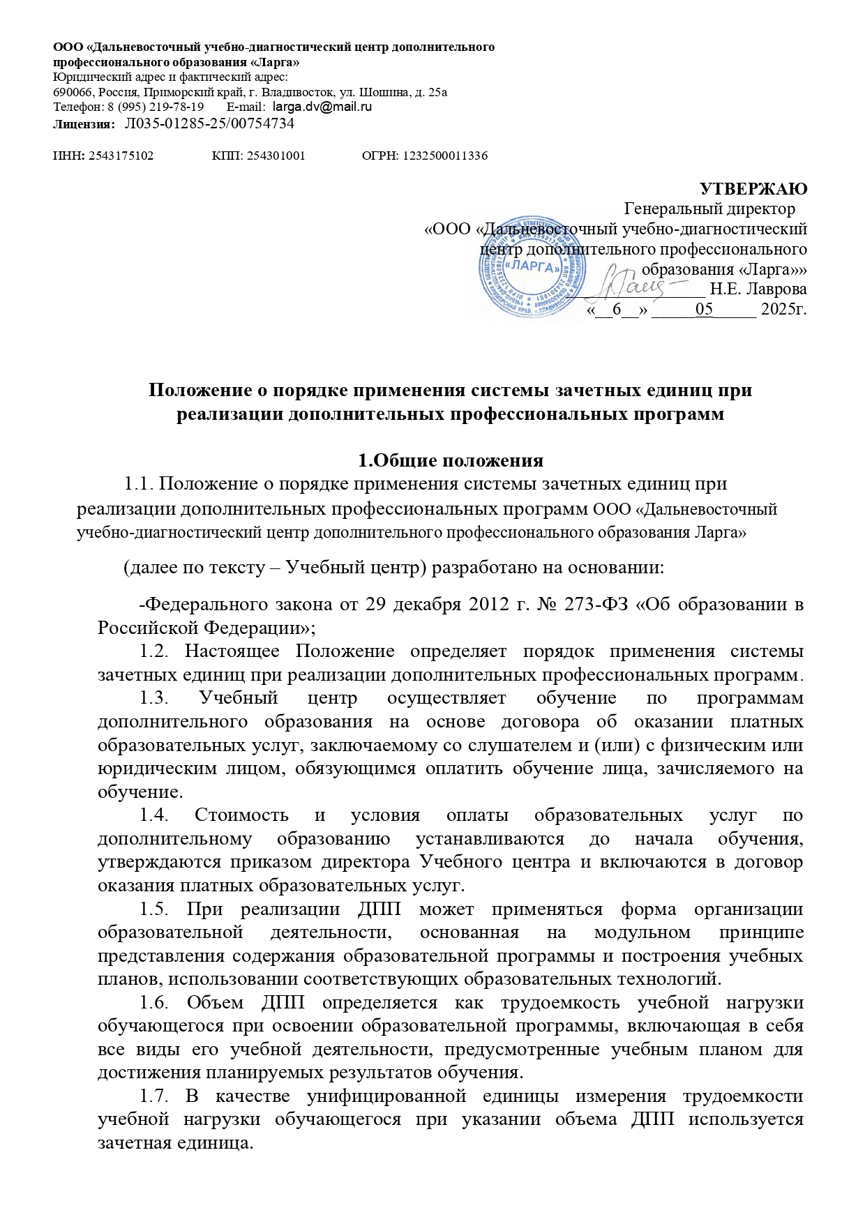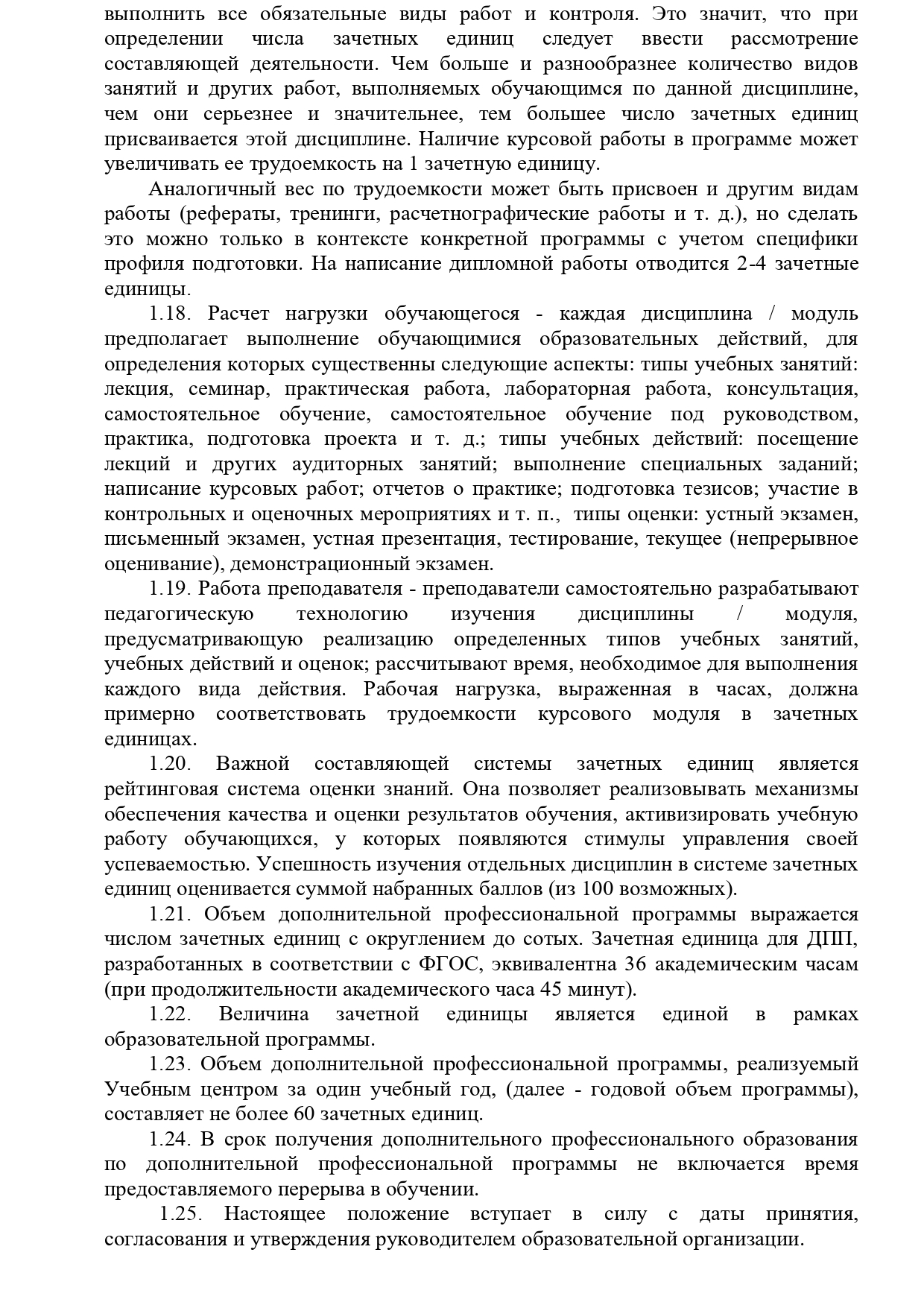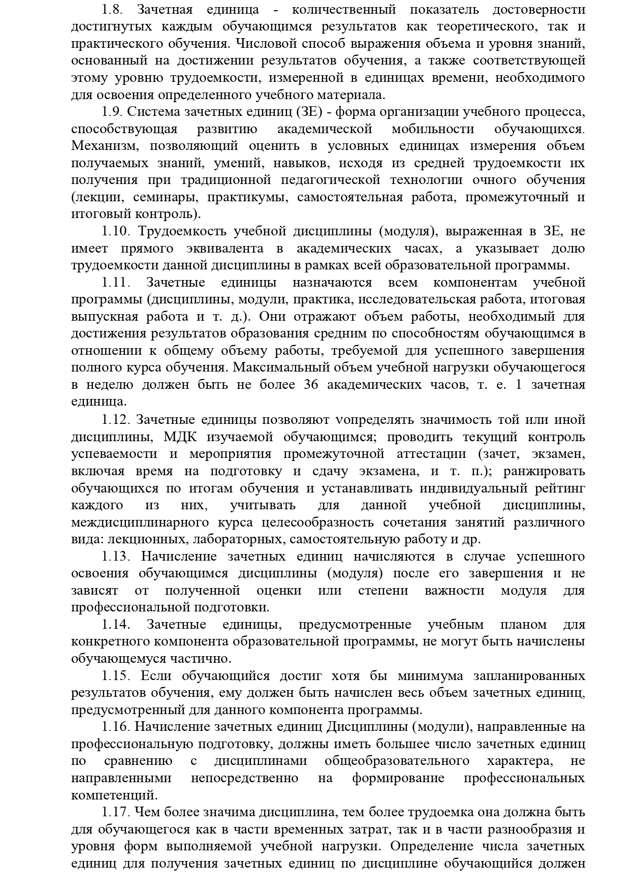 Положение о зачетных единицах
