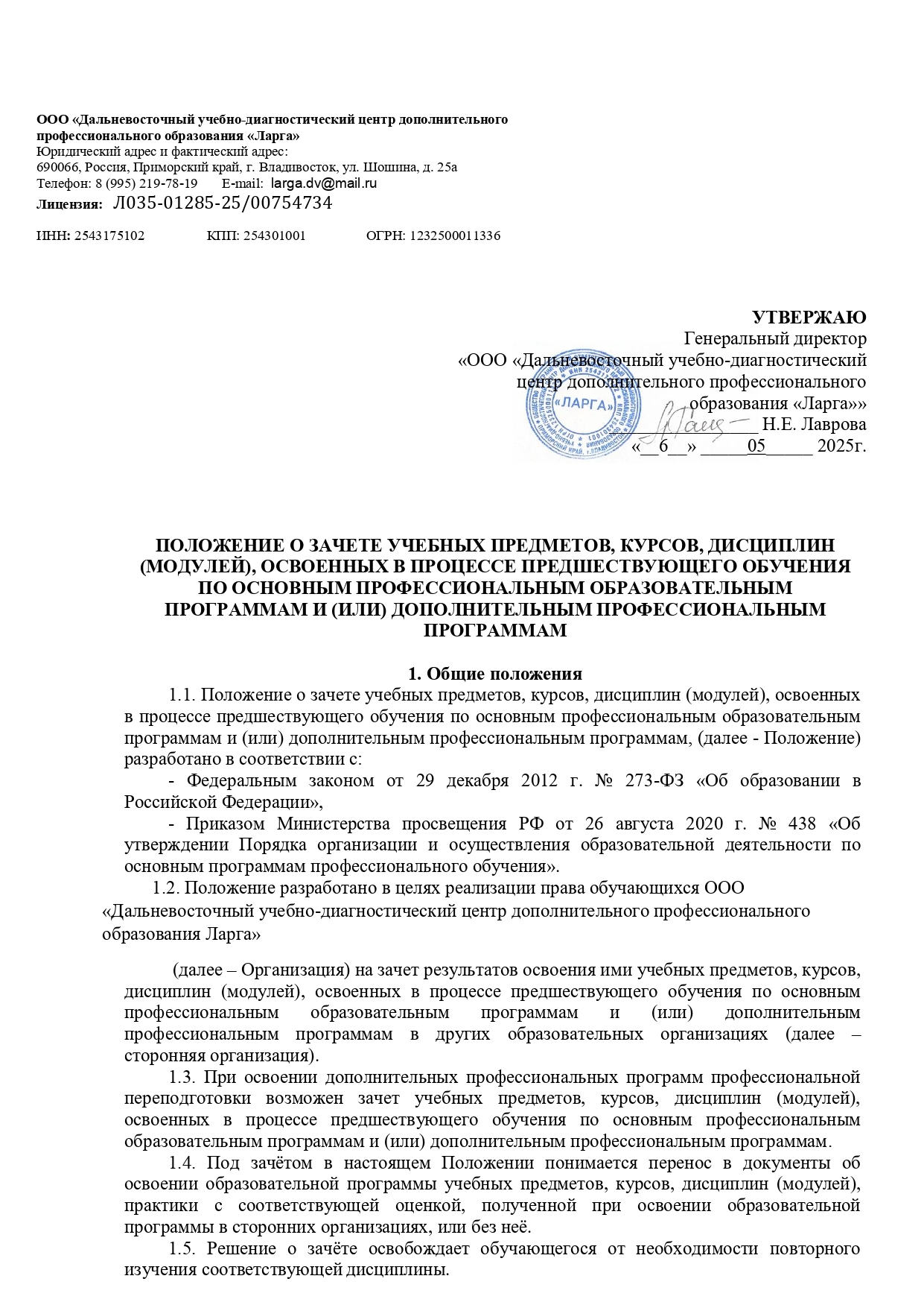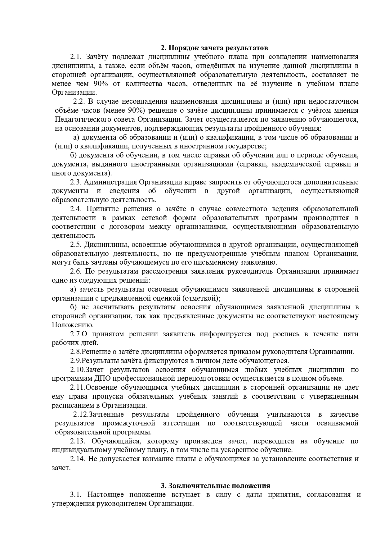 Положение о зачете учебных дисциплин, ранее пройденых