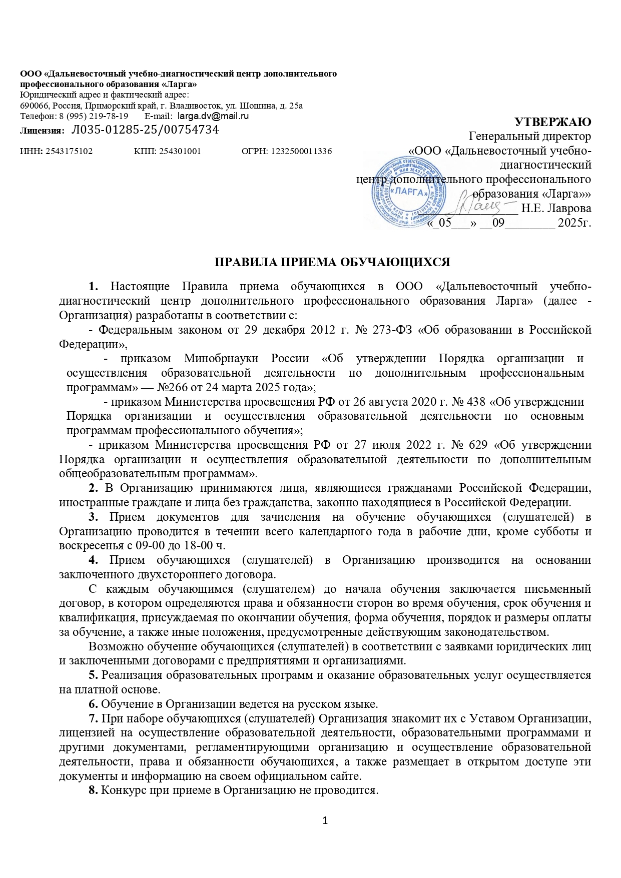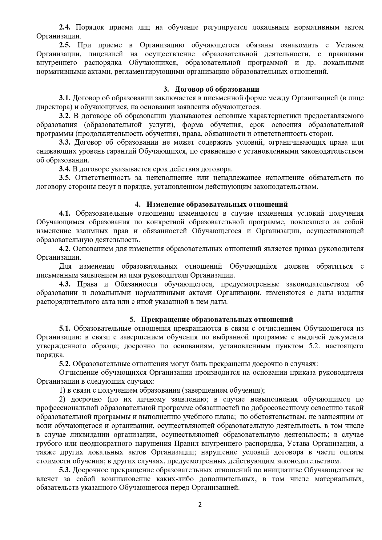 Локальные нормативные акты образовательной организации по основным вопросам организации и осуществления образовательной деятельности, в том числе регламентирующие: Правила приема обучающихся