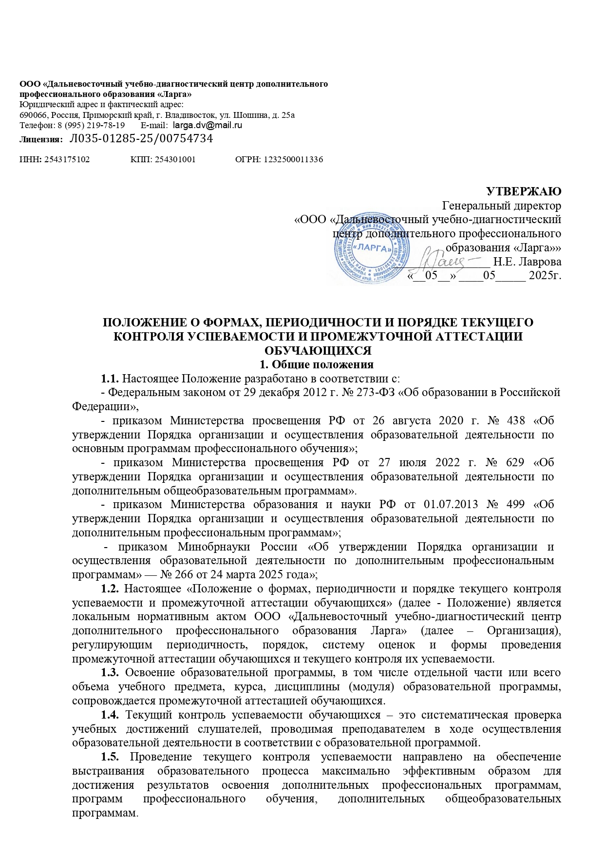 Формы, периодичность и порядок текущего контроля успеваемости и промежуточной аттестации обучающихся